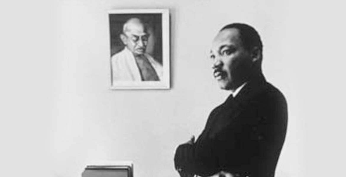 Dr. King says that his first encounter with Gandhi’s teaching was a two years after the death of Gandhi in 1950. Dr. Mordecai Johnson gave the lecture while Dr. King was in seminary. At the time of the speech, Gandhi had already been assassinated. The address had such an effect on King he went out and bought six books on the subject. Some scholars say that Dr. Benjamin Mays introduced King to Gandhi’s work while an undergraduate. Dr. Mays had gone with a delegation of Christians to visit India and met Gandhi in 1935. However in the paper “My Journey to Non-violence” King credits Dr. Johnson for introducing him to Gandhi.
